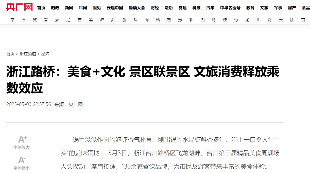 China National Radio Focus! The Third Taizhou Premium Food Week Ignites the "Multiplier Effect" of Cultural Tourism Consumption.
