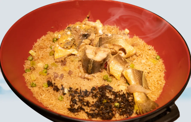 In the past, Taizhou fishermen faced limitations in ingredients and cooking methods on their boats. Coupled with the high yield of yellow croaker, they gradually developed a method of stewing freshly caught yellow croaker and rice together in a clay pot, creating "Yellow Croaker Rice." Using pine wood as fuel added a unique smoky aroma to the dish.