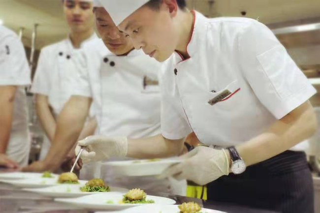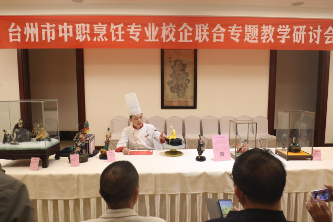 The integration of cultural resource inheritance and a hotel's culinary services is achieved through sensory experiences. In his spare time, Liu Cunchang elevated Tiantai's intangible cultural heritage craft of "dough flower molding" to new heights, successfully applying for its inclusion in Zhejiang Province's specialized vocational capacity development projects. Leveraging his painting skills, he created historical figure scenes for "dough flowers" (such as themes like "Two Immortals of Harmony" and "Poetry Road Culture"). By cleverly incorporating these into banquet settings, he further explored the excellent resources and cultural connotations of Tiantai's traditional cuisine. This not only elevated the quality and cultural taste but also implemented the specific requirements of the provincial party committee and government to promote the "Poetic and Picturesque Zhejiang · Hundred Counties, Thousand Bowls" project, making it a new highlight in Taizhou's culinary industry.