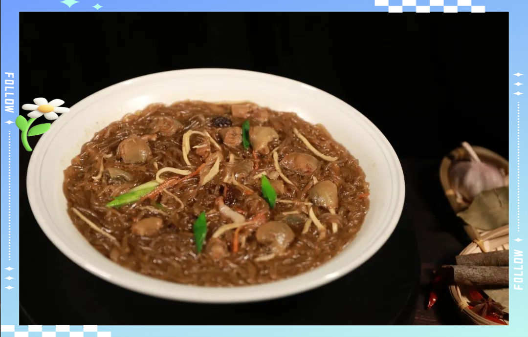 Sea anemone, a rare ingredient found in the coastal waters of Wenling, is highly regarded for its unique, savory taste. Bean noodles, a traditional staple in the Taizhou region, pair perfectly with sea anemone. In the kitchens of southern Taizhou's Wenling, this Mountain and Sea Double Delicacy—Sea Anemone with Bean Noodles—is not only a delicious dish but also a deep emotional connection to the flavors of home.