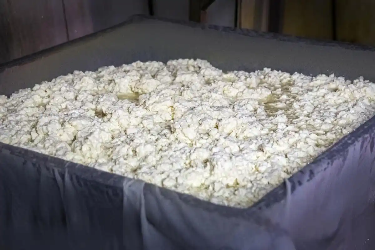 The boiled soy milk contains bean dregs. After filtering it through a white cloth, the milk is allowed to cool slightly. Then, brine is slowly added. This step is vital. Unlike traditional methods, Zhu Ji uses pure brine for coagulation, resulting in exceptionally tender bean curd and a more uniformly dense and smooth vegetable protein structure.