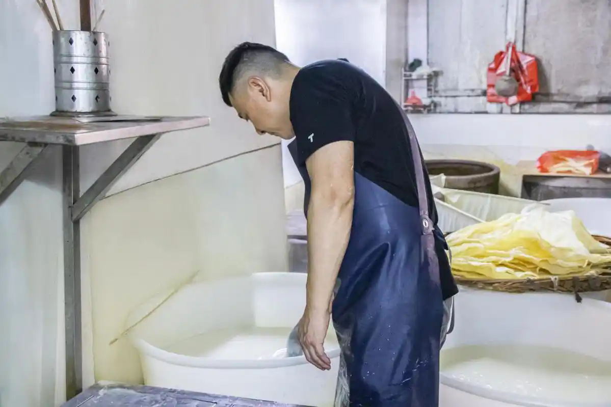 Zhu Haifeng is the fifth-generation inheritor of the Zhu Ji dried tofu-making technique. To maintain the traditional flavor and texture of the tofu, he insists on using quality ingredients, refusing adulteration, and continuing the traditional manual production methods. Behind the creation of these exquisitely delicious pieces of dried tofu lies the perseverance of five generations of Zhu Haifeng's family.