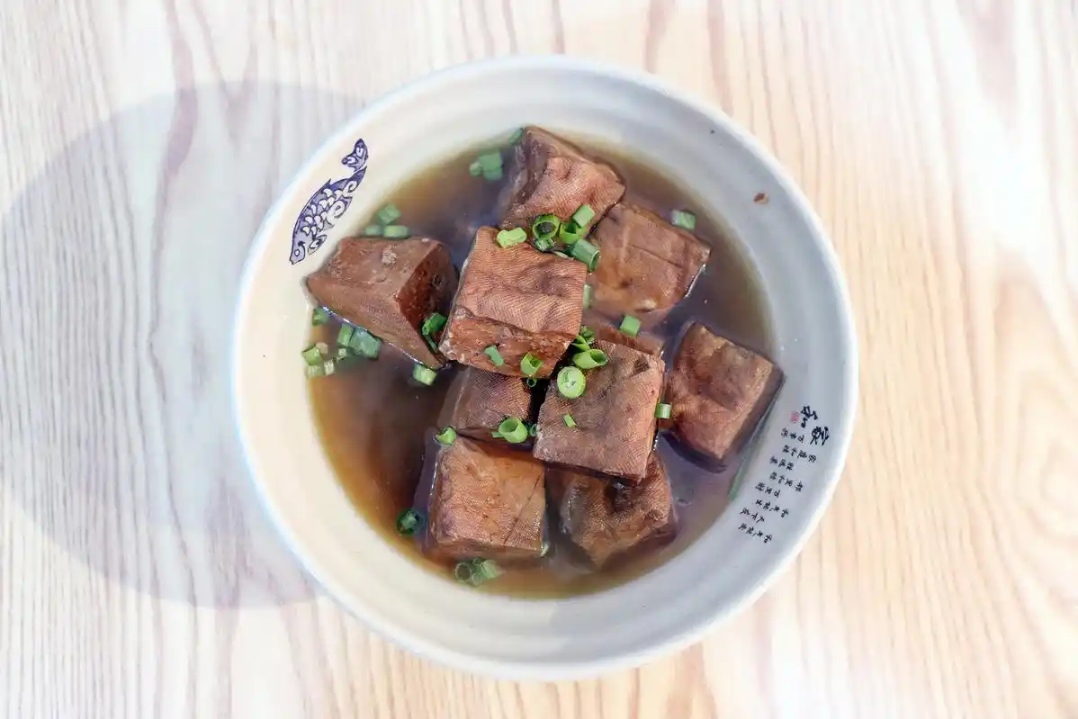 Once pressed, the firm tofu block is cut into pieces along the grid lines and left to dry. Then comes the most critical step: marinating in spiced brine. The brine is Zhu Haifeng's secret weapon, a fragrant concoction simmered with over a dozen natural spices. The dried tofu pieces are simmered in this brine until they absorb all the flavors, turning a rich brownish-red color. This process is time-consuming and labor-intensive, but Zhu Haifeng consistently refuses to skimp on time or ingredients. It is precisely this commitment that has earned the Zhu family's craft lasting praise from the local community.