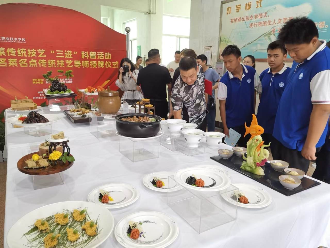 On September 19(2025), the "Three Entries" science popularization activity for traditional Taizhou culinary techniques, along with the Taizhou Famous Dishes and Dim Sum Traditional Skills Mentor Appreciation Ceremony, was held at Huangyan Second Vocational Technical School.