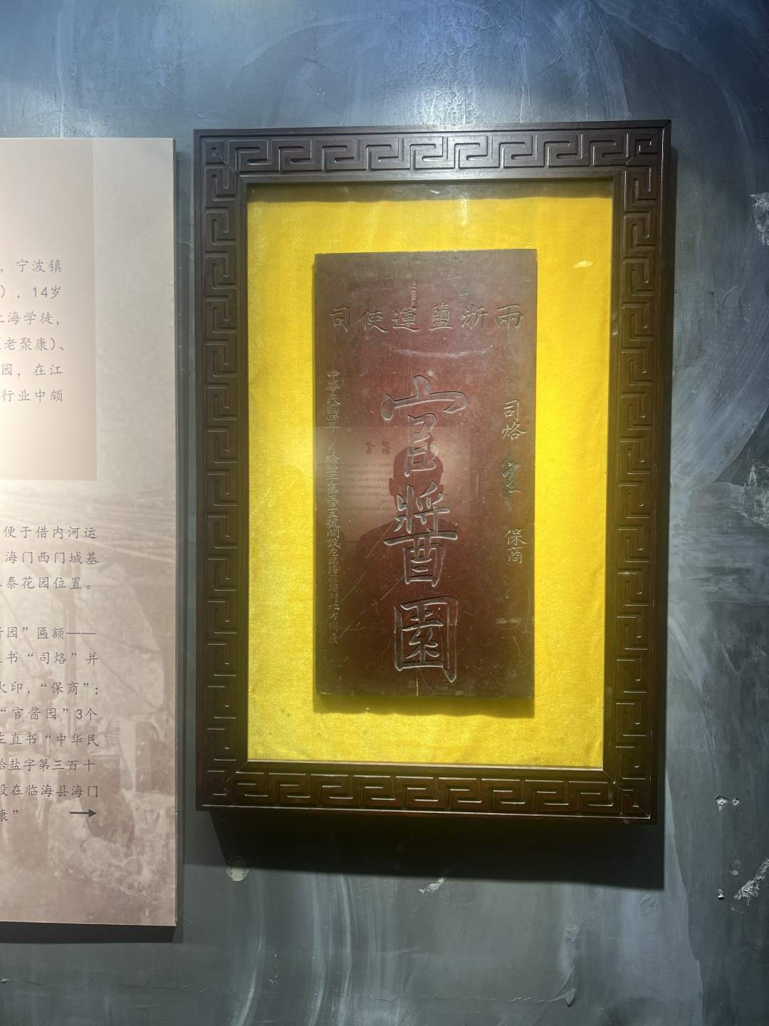 This plaque is displayed in the Tongkang Liquor Museum within the factory premises, bearing the serial number "Salt Character No. 315" and issued by the Liangzhe Salt Transport Commissioner's Office, equivalent to a business license at the time.