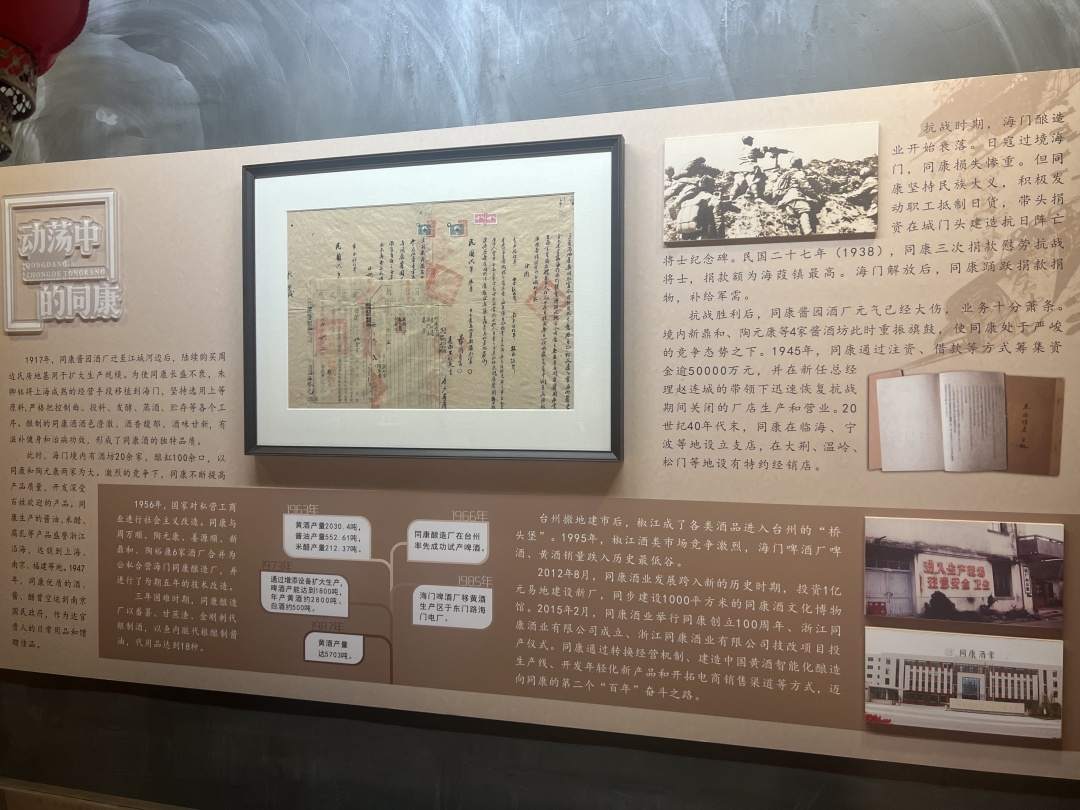 "This is the treasure of our museum," said Zhou Hao, General Manager of Zhejiang Tongkang Liquor Co., Ltd., pointing to a red plaque. "Tongkang was established in 1914, and this is the 'Official Sauce Garden' plaque issued by the authorities in 1915."