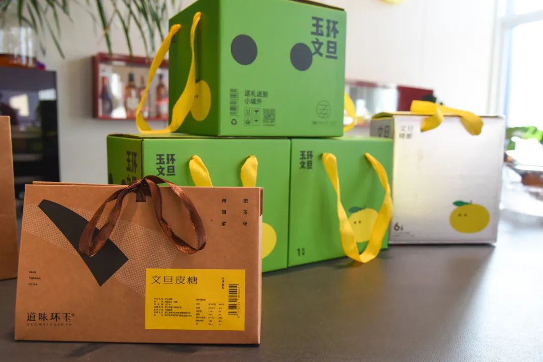 “This pomelo wine is designed with the Yuhuan pomelo as its inspiration. It’s made from pomelo pulp and produced by ‘Chen Wanhe,’ a century-old local winery in Yuhuan—making it perfect as a gift,” explained staff enthusiastically as they introduced products to visitors, many of whom purchased Yuhuan’s finest goods.